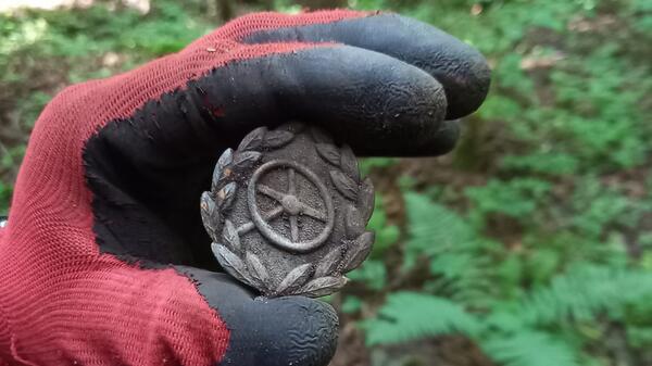 Członkowie Stowarzyszenia Historyczno-Eksploracyjnego Jaćwież – Ełk, Augustów znaleźli w Mamerkach srebrną odznakę kierowcy Wehrmacht /Waffen SS.
