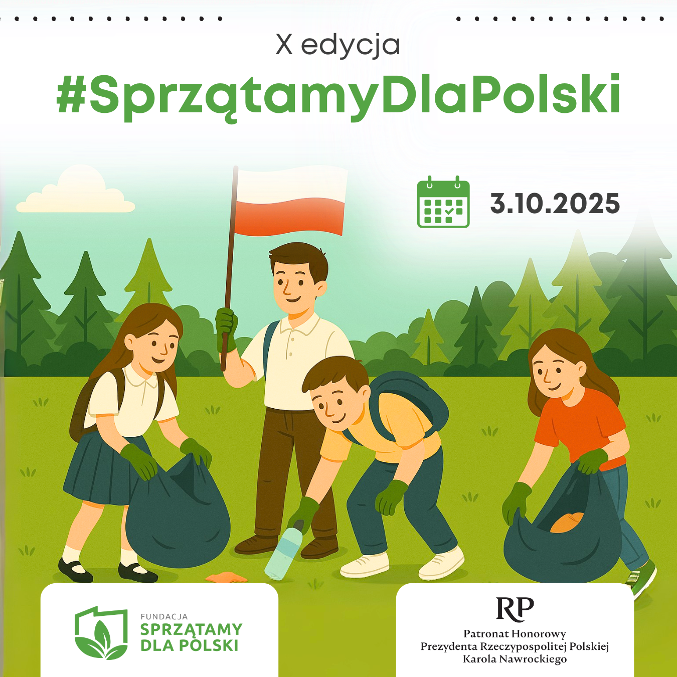 Pod Honorowym Patronatem Prezydenta RP Karola Nawrockiego odbywa się dziś w całej Polsce jubileuszowa, dziesiąta odsłona jednej z największych proekologicznych inicjatyw w Polsce – #SprzątamyDlaPolski. Do akcji zgłosiło się niespełna 100 000 osób z ponad 1000 szkół i przedszkoli w całej Polsce.