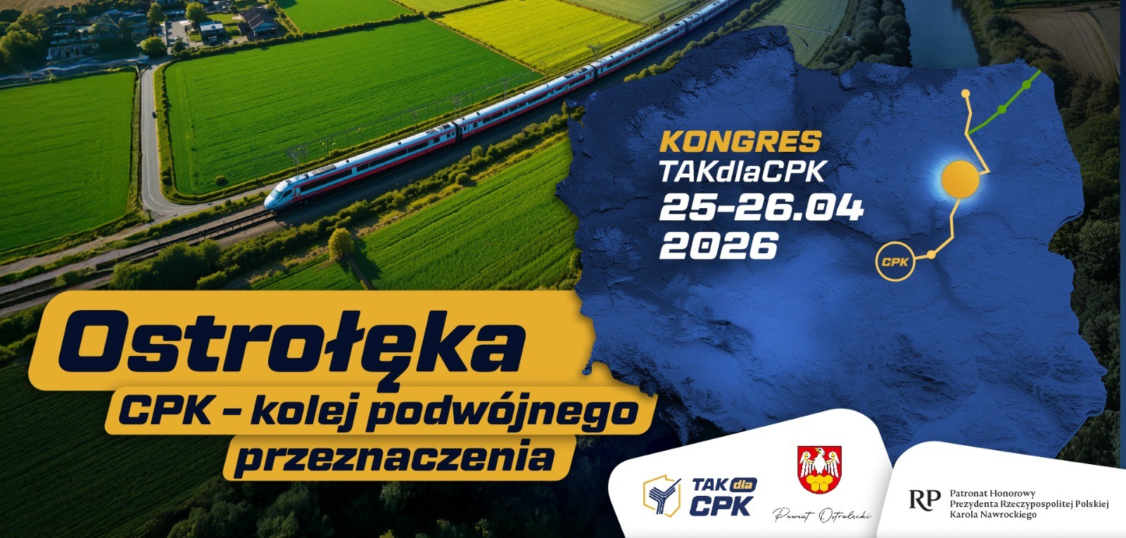 W dniu 25 kwietnia 2026 roku w Ostrołęce odbędzie się ogólnopolski kongres ekspercki pn. „CPK – Kolej podwójnego przeznaczenia”, poświęcony strategicznemu znaczeniu tzw. szprychy nr 3 – połączenia kolejowego na trasie Centralny Port Komunikacyjny-Warszawa-Ostrołęka-Łomża-Giżycko.