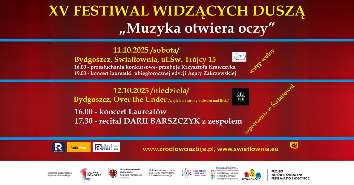 W sobotę spotykamy się w bydgoskiej Światłowni przy ul. Św. Trójcy 15 o godzinie 16.00. W niedzielę galę i występ gwiazdy festiwalowej, Darii Barszczyk z zespołem, możemy śledzić w gościnnych progach klubu muzycznego Over the Under – początek o 16:00. Tak niezapomnianych i niecodziennych koncertów nie możesz przegapić. REPUBLIKA jest patronem medialnym Festiwalu.