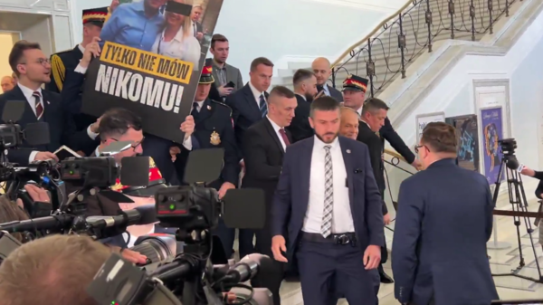 Awantura w Sejmie. Posłowie Prawa i Sprawiedliwości chcieli zadać Donaldowi Tuskowi pytania dotyczące pedofilii wsród członków Platformy Obywatelskiej (obecnie KO). W holu sejmowym doszło do przepychanek.