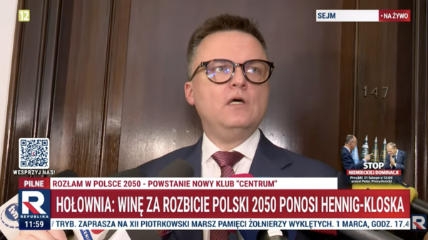 "Jeżeli ktoś odchodzi od stołu, zamyka teczkę, trzaska drzwiami, rzuca kwity, to znaczy, że zdecydował. Że tej rozmowy nie chce. I dzisiaj naprawdę wina, co do sytuacji, które miały miejsce, różnych wyników, była pewnie po obu stronach. Ale winę za rozbicie klubu Polski 2050 przez frakcję Pauliny Hennig-Kloski, ponosi Hennig-Kloska"