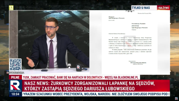 Sędzia Dariusz Łubowski został wyłączony od orzekania po tym jak, jak skrytykował działania rządu Tuska wobec Marcina Romanowskiego i uchylił wobec tego polityka Europejski Nakaz Aresztowania. Telewizja Republika ujawniła, że teraz "żurkowcy" poszukują sędziów, którzy zastąpią sędziego Łubowskiego.