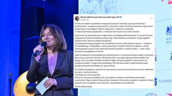 „Od kilku dni stałam się obiektem zmasowanej kampanii nienawiści opartej na kłamstwie i pomówieniach - zorganizowanej przez PIS i prawicowe media – napisała po długim czasie milczenia ws. skandalu pedofilsko-zoofilskiego w Kłodzku Monika Wielichowska, wicemarszałek Sejmu. W oświadczeniu z nazwy wymieniła Republikę, oczywiście w negatywnym kontekście.