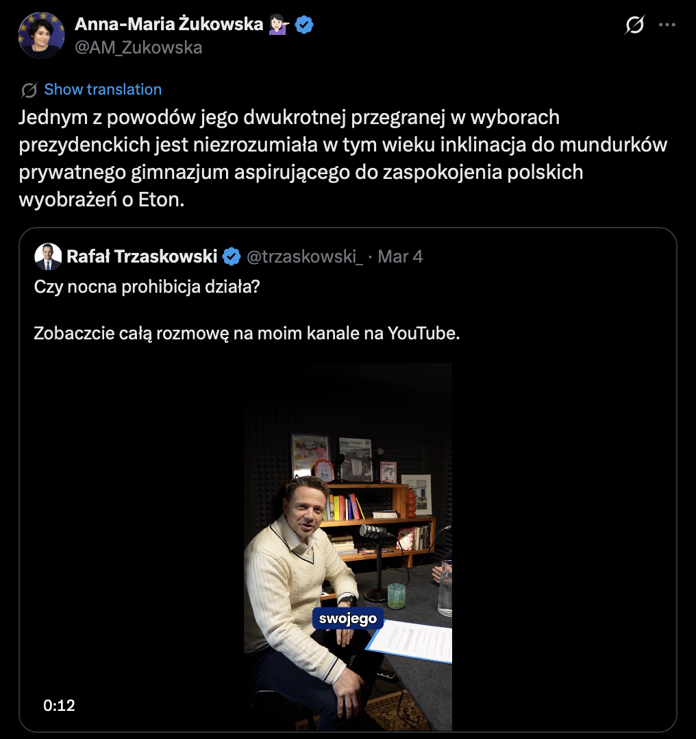 Rafał Trzaskowski pochwalił się w sieci nowym materiałym dotyczącym nocnej prohibicji w Warszawie. Uwagę Anny Marii Żukowskiej (Lewica) przykuł jednak... strój niedoszłego prezydenta Polski.