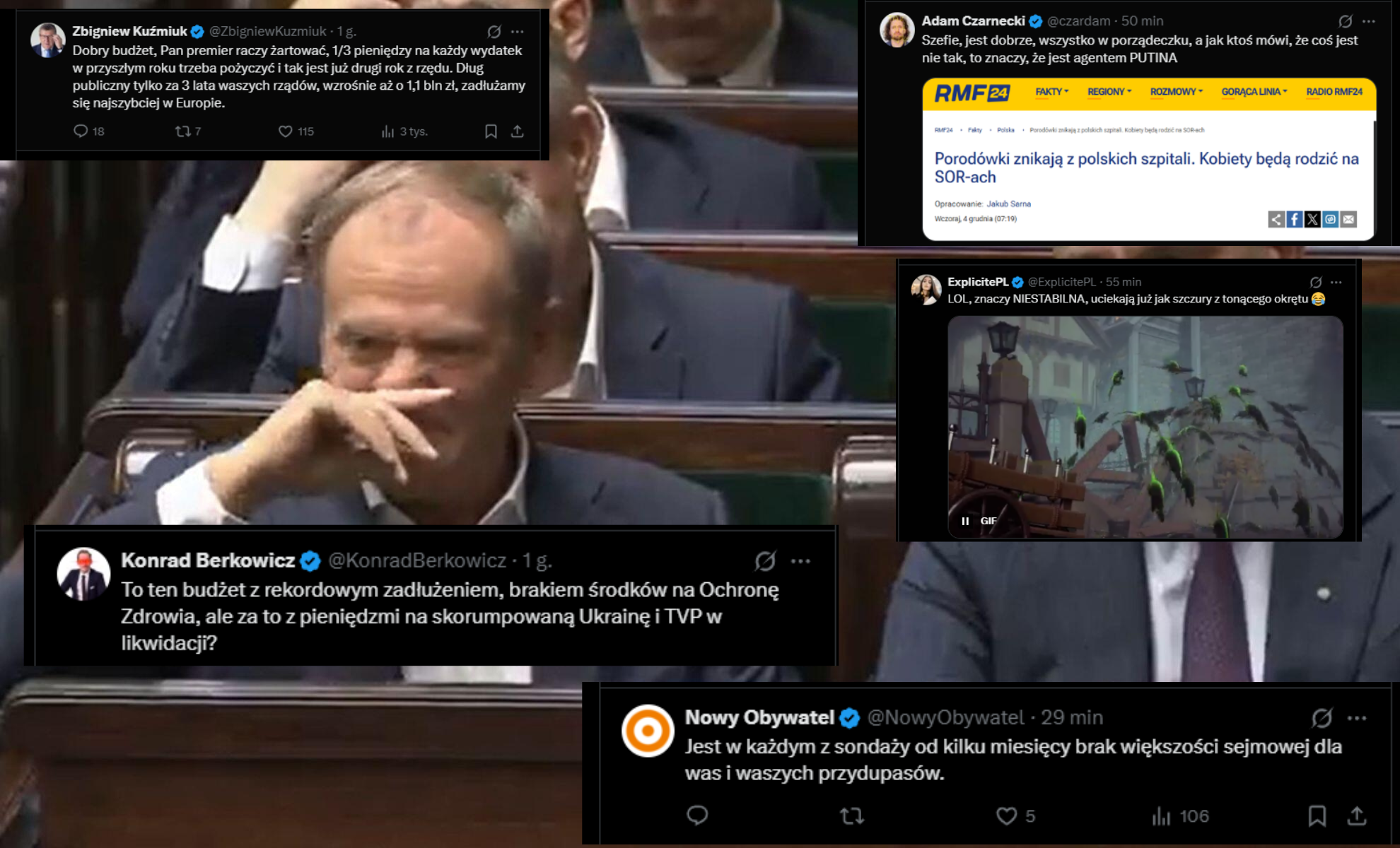 Tusk chwali się "dobrym budżetem, stabilną koalicją i bezpieczeństwem". Internauci bezlitośni dla lidera KO