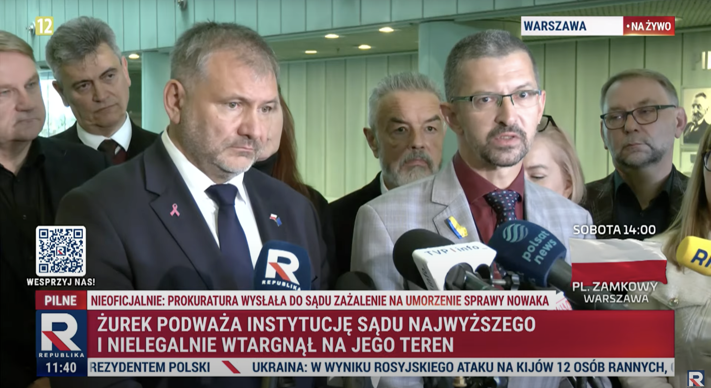 – Składam doniesienia do prokuratury na usiłowanie zastraszenia sędziów Sądu Najwyższego przez ministra sprawiedliwości i prokuratora generalnego. Pan minister wtargnął na teren Sądu Najwyższego jako władza wykonawcza, prokurator generalny, bez wiedzy gospodarza tego miejsca, czyli pierwszego prezesa SN. Mamy do czynienia z brutalnym najściem i pogwałceniem autonomii SN.