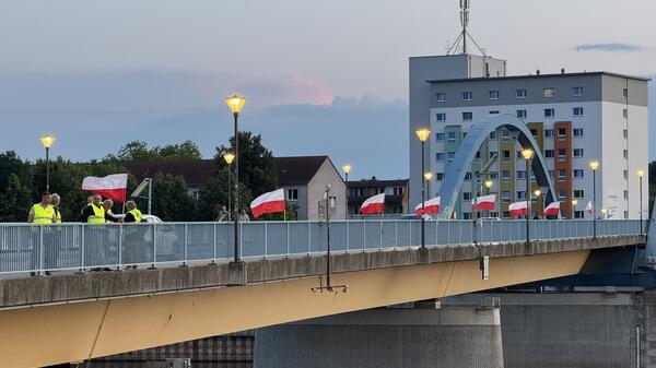 Od miesięcy flagi te dominują w wizerunku mostu, który w rzeczywistości ma symbolizować niewidzialne granice, zjednoczoną Europę. Dzieje się tak również dlatego, że przez długi czas wisiały na pograniczu kompetencji: zbyt polskie dla Niemiec, zbyt niemieckie dla Polski. Każda strona wskazywała na drugą, a flagi pozostały