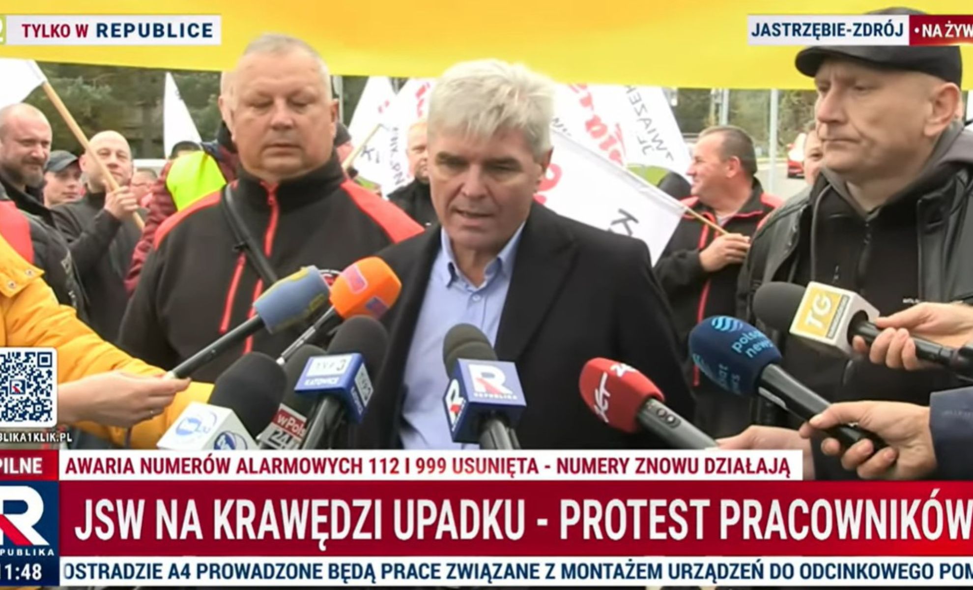 Powtarzam jeszcze raz, sytuacja jest bardzo poważna. To nie chodzi o to, że my chcemy więcej zarabiać. To nie chodzi o to, że my tutaj bijemy się o jakieś swoje własne prywatne interesy. To chodzi o to, że jeżeli ta spółka upadnie, to będzie to miało również swoje skutki dla całego regionu. Chodzi również o to, że Jastrzębskiej Spółki Węglowej jest ważna z powodów strategicznych. Premier Donald Tusk będąc w Brukseli powiedział, że bezpieczeństwo to jest zbrojenie, a zbrojenie to stal. A bez Jastrzębskiej Spółki Węglowej nie będzie żadnego bezpieczeństwa, dlatego, że ona rozpoczyna cały ten proces technologiczny, na końcu którego jest czołg i armata. Bez Jastrzębskiej spółki Węglowej nie będzie bezpieczeństwa ani dla Polski, ani dla Europy, więc walczymy również o to, żeby Polska była bezpieczna, ale walczymy przede wszystkim o to żeby ta spółka przetrwała