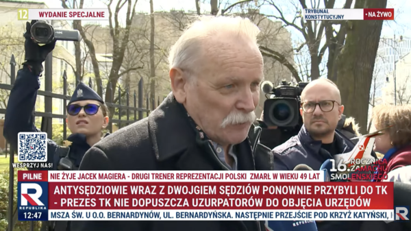 Siedzą i rozmawiają. Myślę, że nic się tam nie dzieje. Jest tam straż Trybunału, nie może dojść do żadnej przemocy, ani prucia szaf czy czegoś w tym rodzaju. To jest urząd, to jest sąd. To jest Trybunał Konstytucyjny, którzy osądza ustawy, czy są one zgodne z Konstytucją. Te ustawy są przecież dostępne. Tam nie ma co kraść. Tak, jak ukradli materiały dyscyplinarne w stosunku do różnych sędziów, wobec których zostały wznowione te śledztwa. Tu nie ma co kraść... Oni chcą wymusić presją, aby pan prezes TK Bogdan Święczkowski ich dopuścił. Nie dopuści. Jako obywatel, mam nadzieję, że kolejny szef instytucji, nie będzie łamał Konstytucji. Jestem o tym głęboko przekonany. Zresztą wczoraj dał dowód tego, że jest tej Konstytucji wierny.