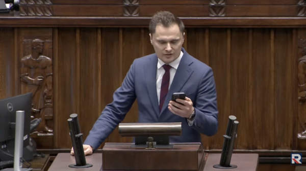 Na mównicę wyszedł Krzysztof Ciecióra, poseł PiS. Zwrócił się do kolegów z sali - do części ekipy rządzący.