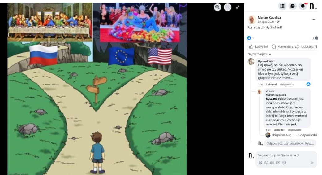 Kubalica w mediach społecznościowych wiernie popiera rosyjską propagandę - chwali Zacharową, a także polskich zwolenników Kremla, uderza w NATO, USA, obrzydza Ukrainę, a nawet szkaluje Andrzeja Poczobuta - to wszystko zaś, jak widać, nie przeszkadza Czarzastemu.