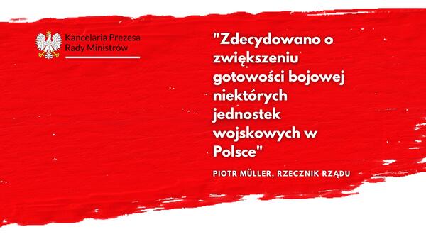 "W związku z zaistniałą sytuacją wdrożono procedury, które są przewidziane w takiej sytuacji, w tym m.in. przed chwilą zdecydowano o tym, aby podwyższyć gotowość niektórych jednostek bojowych, wojskowych na terenie Polski oraz zwiększyć gotowość bojową jednostek służb mundurowych na terenie naszego kraju", powiedział rzecznik rządu.