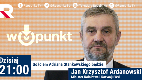 Gościem programu W Punkt będzie JAN KRZYSZTOF ARDANOWSKI, minister rolnictwa i rozwoju wsi. Opowie o problemach rolników z suszą, walką z ASF. Czym tak naprawdę są protesty rolników i kto za nimi stoi. Zapraszamy o 21:00 do Telewizji Republika.