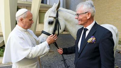 Papież Leon XIV otrzymał w darze białego konia. Proton, czystej krwi arab, to wyjątkowa niespodzianka, jaką Ojcu Świętemu sprawił Andrzej Michalski, właściciel i założyciel stadniny koni w Kołobrzegu-Budzistowie