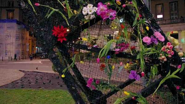 "Tęcza" była instalacją Julity Wójcik, utworzoną przez 16 tys. kolorowych, sztucznych kwiatów. Zamówił ją Instytut Adama Mickiewicza w celu uczczenia polskiej prezydencji w Unii Europejskiej. Autorka instalacji w sposób zdecydowany odcina się od przypisywania jej treści politycznych i społecznych.