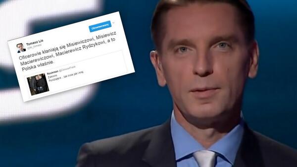 "Oficerowie kłaniają się Misiewiczowi, Misiewicz Macierewiczowi, Macierewicz Rydzykowi, a to Polska właśnie" – napisał na Twitterze Tomasz Lis i udostępnił zdjęcie. Nie sprawdził jednak kogo ono przedstawia. Redaktorowi naczelnemu "Newsweeka" wydawało się, że na zdjęciu widać Antoniego Macierewicza z ojcem Tadeuszem Rydzykiem, jednak fotografia przedstawia Romana Giertycha, a pochodzi z 2005 roku.