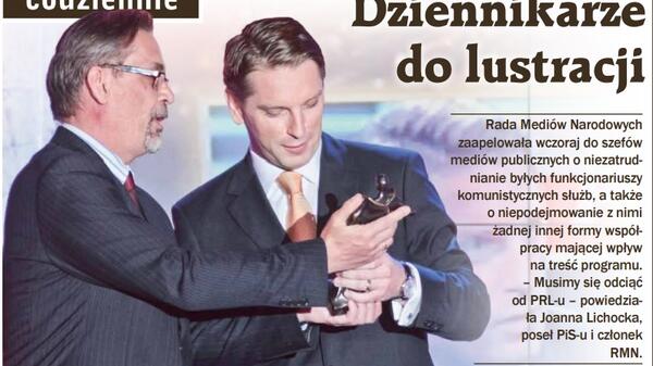 Chodzi o okładkę "Gazety Polskiej Codziennie" z 27 kwietnia. Artykuł "Dziennikarze do lustracji" redakcja dziennika opatrzyła zdjęciem Jacka Żakowskiego i Tomasza Lisa. "Rada Mediów Narodowych zaapelowała wczoraj do szefów mediów publicznych o niezatrudnianie byłych funkcjonariuszy komunistycznych służb, a także o niepodejmowanie z nimi żadnej innej formy współpracy mającej wpływ na treść programu. – Musimy się odciąć od PRL‑u – powiedziała Joanna Lichocka, poseł PiS‑u i członek RMN" – brzmiał podtytuł na okładce czwartkowej "Gazety Polskiej Codziennie".