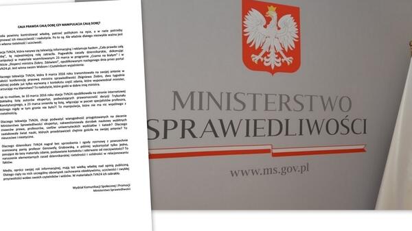 Resort sprawiedliwości domaga się od TVN24 sprostowania w związku z materiałem wyemitowanym w środę w programie "Czarno na Białym". Ministerstwo zarzuca stacji manipulacje oraz naruszenie zasad rzetelności dziennikarskiej.