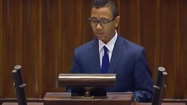 Dziś w Sejmie specjalne posiedzenie Dzieci i Młodzieży. Jednym z przemawiających z sejmowej trybuny był uczeń - poseł Erwin Rabarijoely, który zaczął swoje wystąpienie od słów "Szczęść Boże".