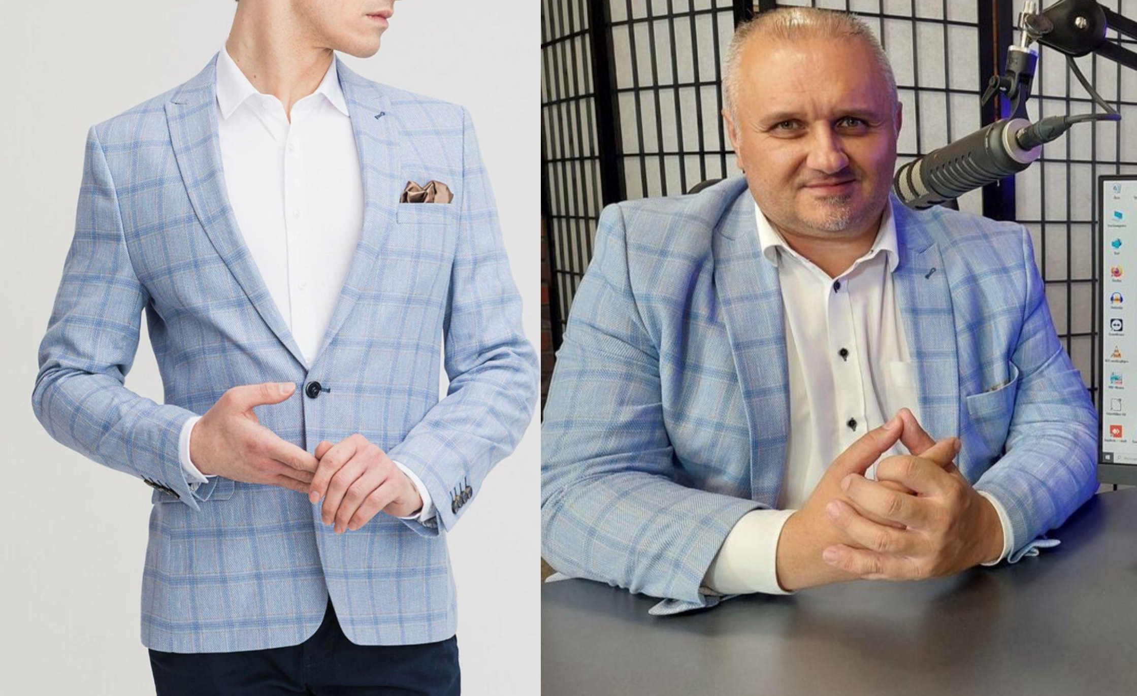 Jednym z dowodów mają być zdjęcia starosty w oferowanych przez opolski sklep marynarkach. Zostały zrobione podczas wywiadów udzielanych przez samorządowca w Radiu Nysa Hot. To w błękitnej marynarce pochodzi z 29 czerwca 2025 r., a w bordowej z 28 października 2025 r.
