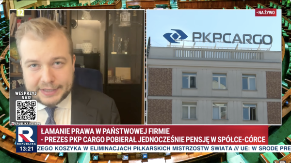 "Dotarła do mnie taka informacja, przekazana przez pracowników PKP Cargo, że nowemu zarządowi PKP Cargo nie wystarczyły pensje na poziomie 40/50 tys. złotych miesięcznie - z premierami jeszcze więcej. Zarząd postanowił sobie dorobić, w sposób nielegalny" - przekazał na naszej antenie Michał Moskal, poseł PiS.