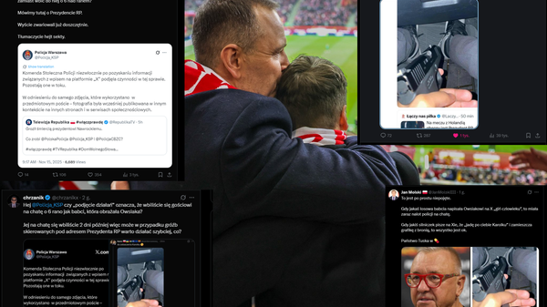 Na profilu „Łączy nas piłka” na platformie X pojawiło się zdjęcie prezydenta Karola Nawrockiego z synem podczas meczu Polska–Holandia, pod którym anonimowe konto opublikowało fotografię broni z komentarzem „do zobaczenia Karolku”. Sprawa została nagłośniona przez internautów, a komentarz usunięty.