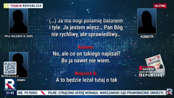 Dotarliśmy do nagrania rozmowy, w trakcie której oficer Służby Ochrony Państwa opowiadał o planach brutalnego zabójstwa dziennikarza Republiki. W trakcie rozmowy wulgarnie wypowiadano się także na temat Ministra Spraw Wewnętrznych i Administracji. Pod adresem ministra padły m.in. określenia na "k".
