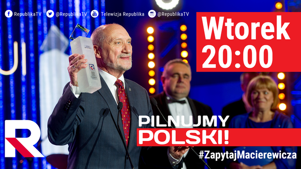 Antoni Macierewicz i Ryszard Gromadzki zapraszają dziś (19 czerwca) na kolejny odcinek programu "Pilnujmy Polski". Jak zawsze będzie można zadać pytanie wiceprezesowi PiS pisząc pod hasztagiem #ZapytajMacierewicza. Oglądaj o 20:00 w Telewizji Republika i na portalu www.telewizjarepublika.pl.