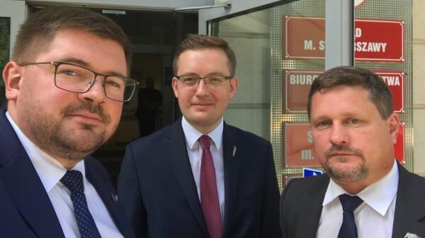 Tomasz Rzymkowski, Robert Winnicki oraz Bartosz Jóźwiak stawili się dziś w stołecznym ratuszu w celu przeanalizowania dokumentacji pani Ewy Gawor, dyrektor Biura Bezpieczeństwa i Zarządzania Kryzysowego. Jak podają, leży to w ich kompetencjach. Okazuje się, że straż miejska niemal mianowała się na straż ratusza, nie chcąc wpuścić posłów do budynku.
