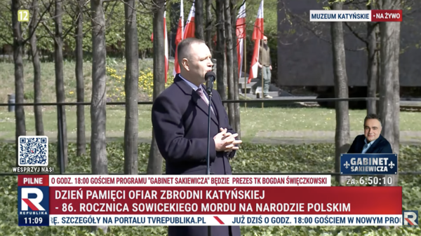 Przed południem, prezydent Karol Nawrocki w Muzeum Katyńskim w Warszawie oddał cześć Polakom zamordowanym w kwietniu i maju 1940 r. przez NKWD. Wygłosił poruszające przemówienie.