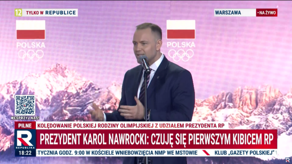 Prezydent Polski Karol Nawrocki wziął dzisiaj udział we wspólnym kolędowaniu z Polską Rodziną Olimpijską. -Sport uczy przywiązania do naszej tożsamości narodowej, biało-czerwonej flagi i hymnu i za to także chciałem podziękować całej rodzinie olimpijskiej i wszystkim sportowcom - powiedział prezydent Nawrocki.