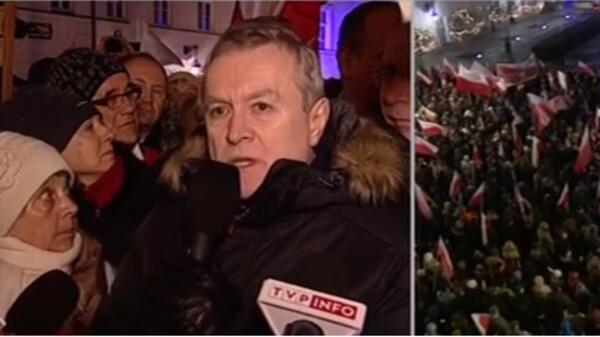 Minister kultury przyznał, że w tej chwili "jest czas sporu i konfliktu, komuś zależy na tym, żeby Polacy nie mogli spokojnie spędzić świąt Bożego Narodzenia. żeby prowokować i żeby polska polityka była oparta na złych emocjach". – My się z tym nie zgadzamy – mówił, podczas gdy tłum skandował "Wolna Polska! Wolna Polska!".