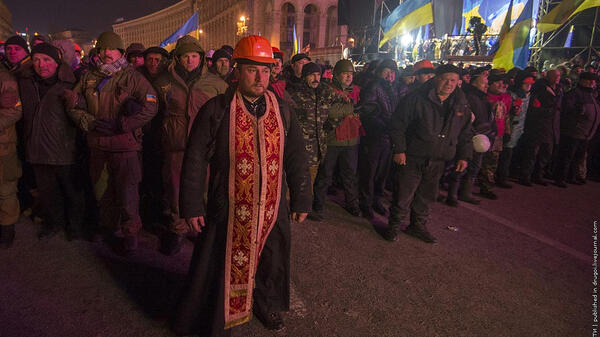 Cerkiew, w której odbywają się główne narady w ramach Forum Euromajdanu, ochraniana jest przez ochotniczą straż.