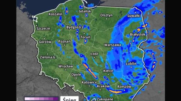 W sobotę będzie zachmurzenie duże z większymi przejaśnieniami, a po południu na północy i zachodzie kraju także rozpogodzeniami. Miejscami opady deszczu, na Podhalu deszczu ze śniegiem, a wysoko w górach śniegu. Lokalnie, głównie na północy, opady krupy śnieżnej. Nad morzem początkowo możliwe burze. Prognozowana suma opadów w północno-wschodniej połowie kraju do 15 mm. W Tatrach przyrost pokrywy śnieżnej o 7 cm. Temperatura maksymalna od 6 st.C na Podlasiu, około 8 st.C w centrum kraju, do 11 st.C w jego zachodniej części oraz miejscami na wybrzeżu, chłodniej w rejonach podgórskich od 4 st.C do 6 st.C. Wiatr umiarkowany, okresami dość silny, w porywach do 60 km/h, na południowym wschodzie porywy do 65 km/h, w rejonie nadmorskim początkowo silny, około 40 km/h, w porywach do 85 km/h, zachodni i północno-zachodni, w północnej połowie kraju okresami północny. Wysoko w Karpatach wiatr w porywach do 80 km/h, w Sudetach do 75 km/h, w strefach opadów śniegu powodujący zawieje śnieżne.