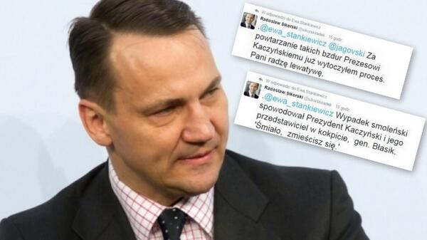 Były minister spraw zagranicznych, Radosław Sikorski, dał kolejny popis chamstwa na Twitterze. Tym razem w ordynarny sposób odpowiedział dziennikarce Ewie Stankiewicz. Przy okazji o "wypadek smoleński" oskarżył śp. prezydenta Lecha Kaczyńskiego i gen. Andrzeja Błasika.