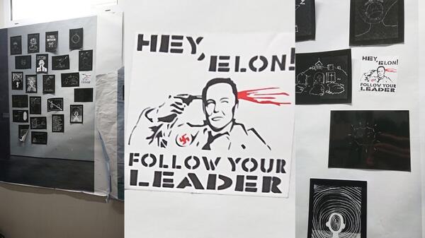 Elon Musk, ze swastyką na ramieniu, popełnia samobójstwo, strzelając sobie w głowę. Do tego napis - "Hej, Elon, podążaj za przywódcą", sugerujący, że w ten sam sposób powinien postąpić i amerykański prezydent Donald Trump. Taki przekaz znajduje się na rysunku, który wisi na korytarzu w Technikum nr. 15 im. Marii Skłodowskiej-Curie we Wrocławiu. Informację tę otrzymaliśmy od naszego Czytelnika.