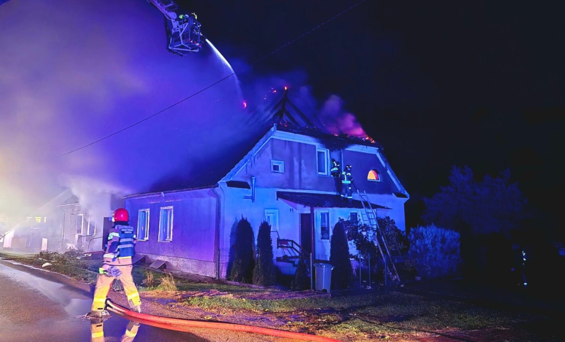 W budynku mieszkały cztery rodziny. Dziesięć osób ewakuowało się z płonącego domu. W jednym z mieszkań na piętrze budynku pozostali jednak 60-latek i 13-latka. Strażakom nie udało się do nich dotrzeć. Służby wciąż dogaszają pożar.