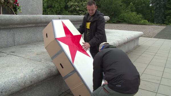 Kilku członków Ruchu Narodowego, z Witoldem Tumanowiczem na czele, położyło symboliczną trumnę Jaruzelskiego pod pomnikiem górującym nad warszawskim Cmentarzem Mauzoleum Żołnierzy Radzieckich.