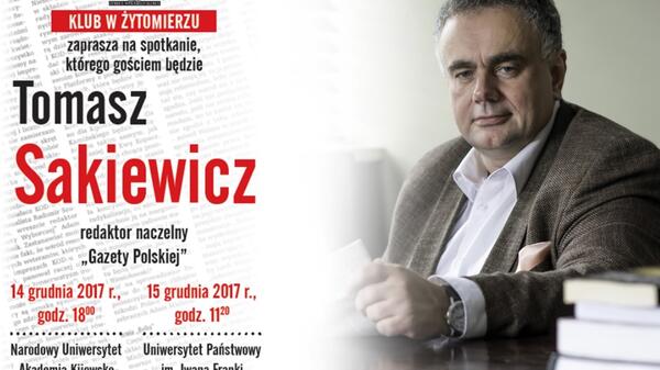 Teraz Tomasz Sakiewicz zaprezentuje swoją książkę na Ukrainie podczas dwóch spotkań zorganizowanych przez Klub "GP" w Żytomierzu.