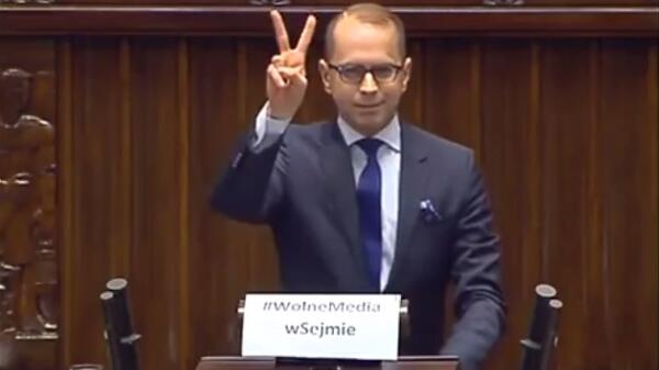W piątek po południu w Sejmie, posłowie opozycji zaczęli blokować mównicę po tym, jak marszałek Sejmu Marek Kuchciński, wykluczył z głosowań nad przyszłorocznym budżetem posła PO Michała Szczerbę. Poseł Platformy wszedł na sejmową mównicę z kartką z napisem "Wolne media".