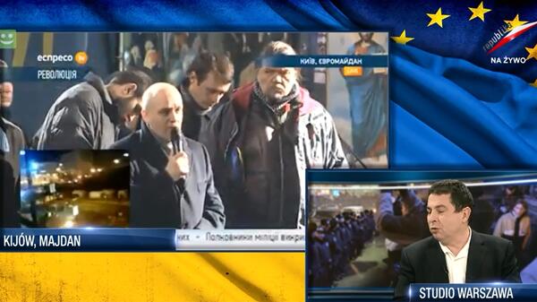 Nawiązując do zamieszek sprzed kilku tygodni, Wildstein powiedział: "Ofiary i tortury wobec demonstrantów nie były w interesie Janukowycza. Były natomiast na rękę Rosji, która jest inspiratorem obecnych wydarzeń, bo przecież to Rosja odciąga Ukrainę od UE. Można zatem uznać, że rosyjskie służby maczają palce w tym kryzysie".