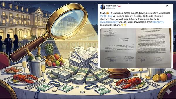 Prawie 900 tysięcy złotych – tyle kosztowała dwudniowa „konferencja” Banku Ochrony Środowiska w luksusowym Hotelu Gołębiewski w Mikołajkach (24–25 października 2025 r.). Ujawniona faktura z tego wydarzenia zszokowała opinię publiczną. Dokument pokazuje, że gros wydatków poszło na bankiety, noclegi i „inne usługi”, a zaledwie ułamek na samą salę konferencyjną. Sprawa wywołała ostrą krytykę nie tylko wśród internautów i opozycji, ale również w parlamencie – połączone komisje sejmowe jednogłośnie zażądały kontroli Najwyższej Izby Kontroli. Tymczasem bank milczy, podobnie jak jego główny akcjonariusz – państwowy Fundusz Ochrony Środowiska – oraz minister klimatu i środowiska. Czy tak ma wyglądać gospodarowanie publicznym groszem pod rządami koalicji 13 grudnia?