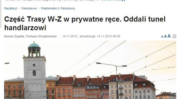 „Do precedensowego zwrotu doszło w 2011 r., ale o sprawie zrobiło się głośno teraz, bowiem kupiec roszczeń postanowił zainwestować w teren przejęty częściowo nad tunelem. Ponieważ to unikatowe miejsce, we wtorek śródmiejscy radni zebrali się na nadzwyczajnej sesji, by przepytać władze dzielnicy o budzącą kontrowersje inwestycję. Najpierw zajęli się zgodą na budowę biurowca podpisaną w kwietniu 2012 r. przez szefową śródmiejskiego wydziału architektury.” – pisze gazeta.