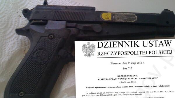 W Dzienniku Ustaw opublikowano rozporządzenie ministra spraw wewnętrznych i administracji Mariusza Błaszczaka wprowadzające czasowy zakaz noszenia broni i przemieszczania jej w stanie rozładowanym. Zmiany w prawie wynikają z konieczności zapewnienia bezpieczeństwa podczas szczytu NATO i Światowych Dni Młodzieży.