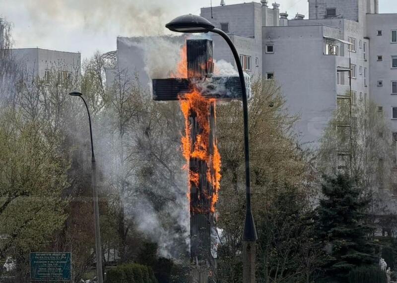 Jest decyzja ws. krzyża papieskiego, który spłonął w Warszawie. "Metalowa konstrukcja nie uległa zniszczeniu"