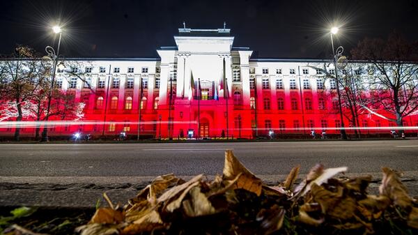 Fasada budynku przy reprezentacyjnych Alejach Ujazdowskich nabrała biało-czerwonych barw.
