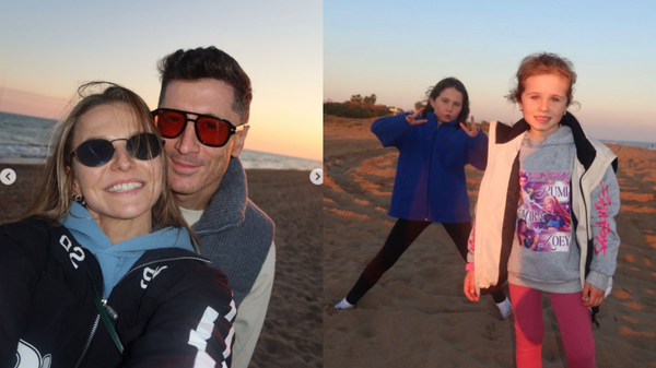 Tym razem Lewandowska pokazała obserwatorom zdjęcia z plażowego spaceru o zachodzie słońca. Na fotografiach widać małżonków spacerujących razem po piasku, a także ich córki bawiące się przy wodzie. Rodzinne kadry trenerka podpisała krótko: „Simple moments”.