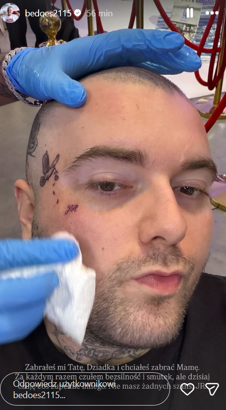Bedoes dotrzymał słowa. Wpłacił milion złotych i zrobił tatuaż na twarzy po rekordowej zbiórce Łatwoganga