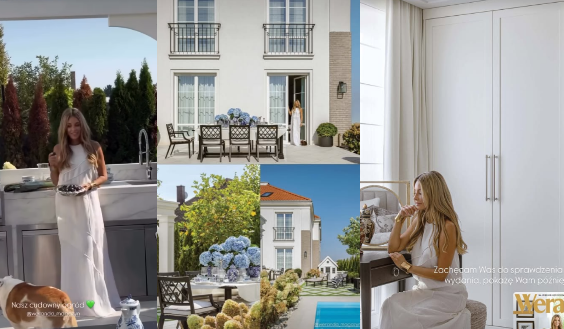 Nowym domem pochwaliła się też w sesji dla magazynu „Weranda”, pozując w białej sukni niczym w bajce o perfekcyjnej pani domu.